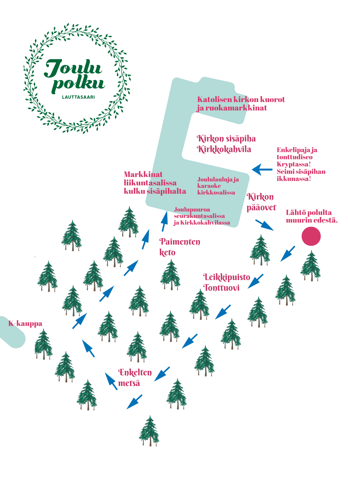 Joulupolku ei ole vain joulurieha, vaan matka joulun ihmeen äärelle. Tilaisuus, jossa voit hiljentyä, nauraa, etsiä, löytää ja kysyä: Mitä joulussa oikeasti juhlitaan? Tervetuloa joulun toivoa vahvistavan sanoman ääreen.