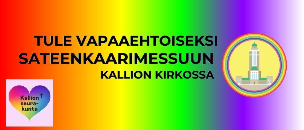 Sateenkaarimessua vietetään kuukauden viimeisenä lauantaina Kallion kirkossa klo 17. Messuissa laulaa messukuoro Ääniset, Kimmo Puunenän johdolla. Messun jälkeen nautitaan kirkkokahvit kappelisalissa.