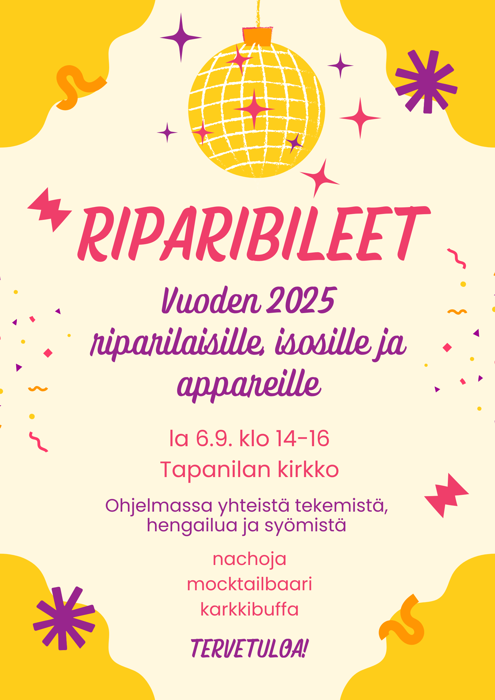 Appareiden yhteinen suunnittelu- ja infoilta pidetään tiistaina 9.9. klo 17.00-19.00 Tapanilan kirkolla. Tervetuloa mukaan! <3