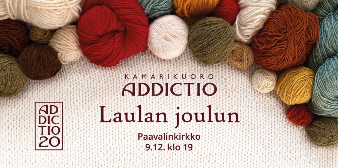 Tervetuloa rauhoittumaan Kamarikuoro Addiction joulukonserttiin, jossa joulun lämpö kohtaa pehmeät sävelet. Konsertissa kuullaan sekä perinteisiä että uusia joululauluja. Lisäksi kuoro kantaesittää Hiski Walleniuksen sävellyksen.