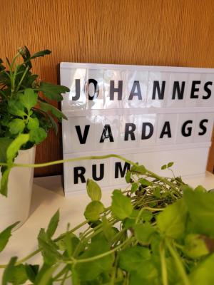 I Johannes vardagsrum kan vi umgås, läsa, måla akvarell, spela spel, handarbeta, delta i programpunkter och förstås dricka kaffe.