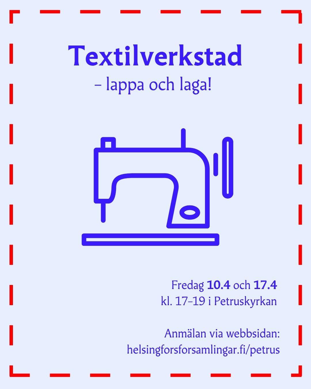 Välkommen med på textilverkstad fredagen den 10.4 och 17.4 kl. 17–19 i Petruskyrkan – denna gång med fokus på hållbarhet och klädvård.