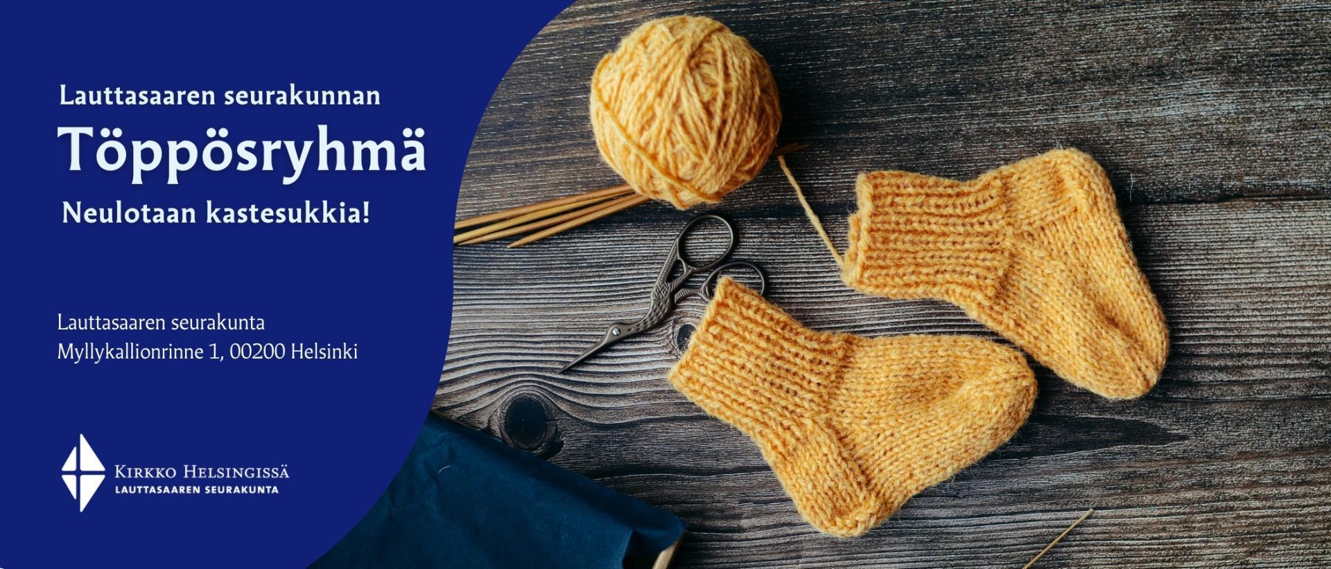 Tervetuloa käsitöiden ääreen! Töppösryhmä kokoontuu joka kuukauden 2. tiistai klo 11.00 Lauttasaaren kirkon B-rapun aulatiloissa.