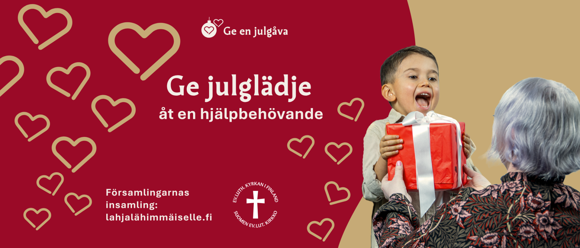 Ge en julgåva är huvudstadsregionens evangelisk-lutherska församlingars gemensamma välgörenhetskampanj, som tidigare kallades Klä julgranen. Insamlingsobjektet är fysiska presentkort, vars belopp donatorn själv kan bestämma. Presentkort önskas i synnerhet till stora dagligvarubutiker, eftersom de är allra mest mångsidiga för olika behov. Insamlingstiden är 13.11–7.12.2025. Det finns sammanlagt cirka 40 verksamhetsställen i huvudstadsregionen dit presentkorten kan föras. Dessa mottagningsplatser hittas på adressen lahjalahimmaiselle.fi/pasvenska.