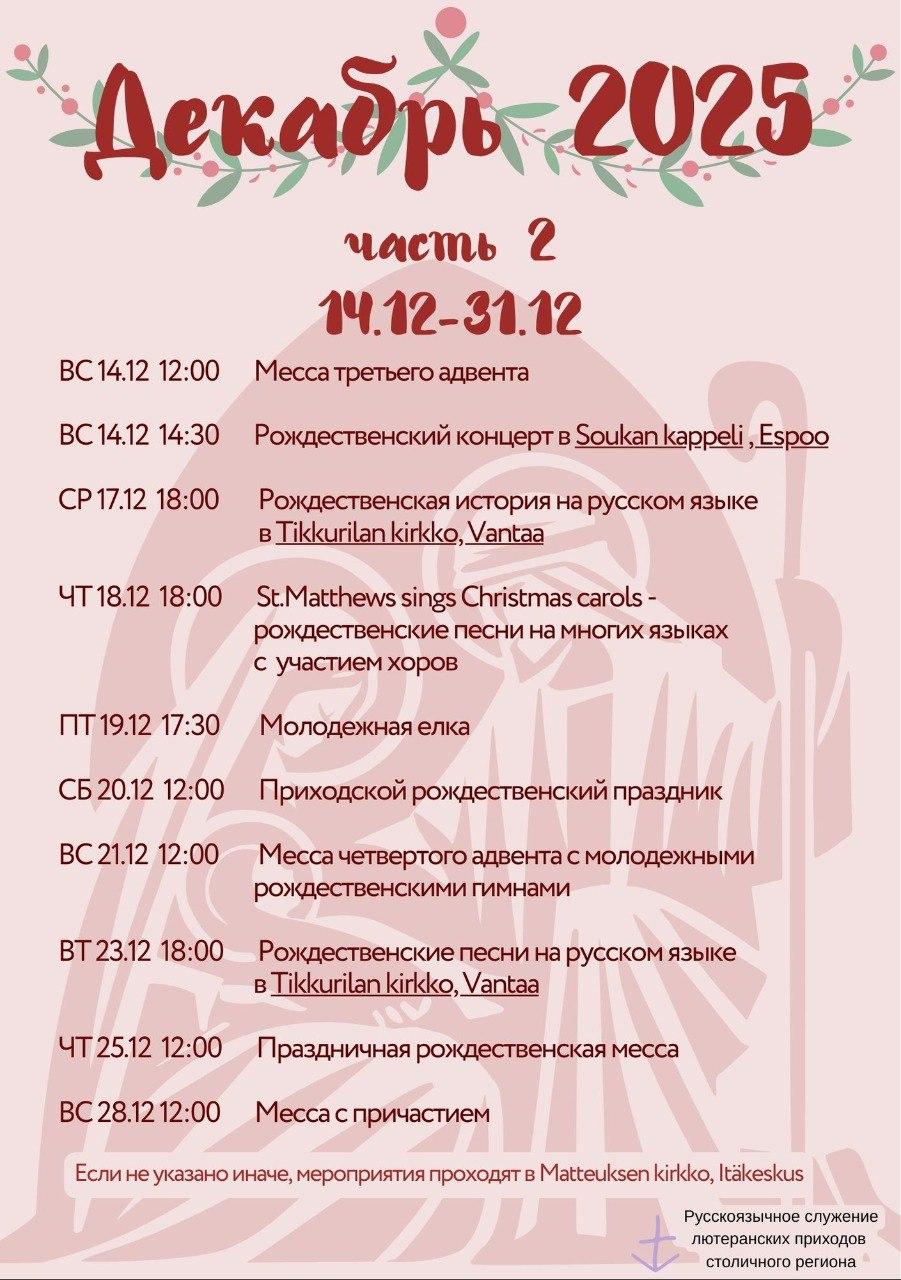 Смотрите полый список мероприятий, которые проходят в русскоязычной общине во время адвента.
