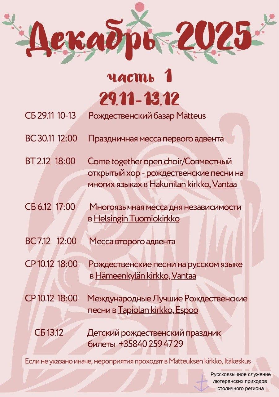 Декабрьские события столичного региона - мессы и богослужения, ярмарки, общие праздники, концерты, музыкальные встречи и многое-многое другое!