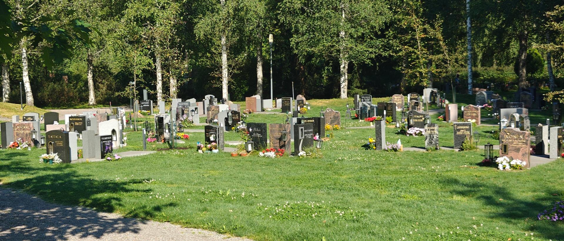 Yläkortteleissa 34-37 sekä 39-41 on runsaasti myyntiin vapautuneita hautapaikkoja. Aluetta koristaa mm. pensashanhikit ja poppelit. Vapaita paikkoja löytyy esimerkiksi uurnalehdon takaportin läheisyydestä, josta pääsee suoraan keskuspuistoon.
