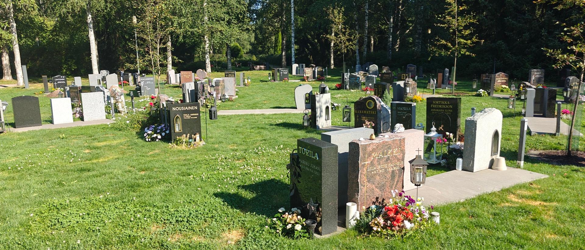 Vapautuneita hautapaikkoja on Uurnalehdon vanhemmissa kortteleissa. Lisätietoja saa sähköpostitse osoitteesta malminhautapaikat@evl.fi.