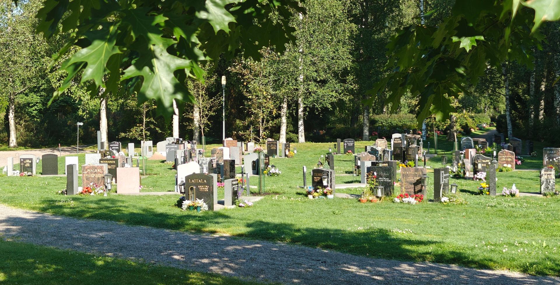 Alueella on muistelupaikka isojen kuusien alla. Vain leikkokukkatervehdyksiä niille varattuihin kukka-altaisiin. Kynttilätervehdykset vain kivetylle alueelle, ei metsään paloturvallisuussyistä.