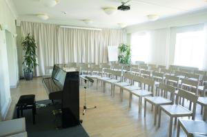 - keittiössä kahvin- ja vedenkeitin, mikroaaltouuni, kotiliesi, laitosastianpesukone, termoskannut ja kahvipannut