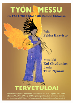 Yhteiskunnallinen työn messu kokoaa jälleen ensi marraskuussa, 22.11. kello 18 Kallion kirkkoon ammattiyhdistysväkeä, luottamusmiehiä, takapenkkiläisiksi itsensä kokevia ja yhteiskunnan kehittämisestä kiinnostuneita.