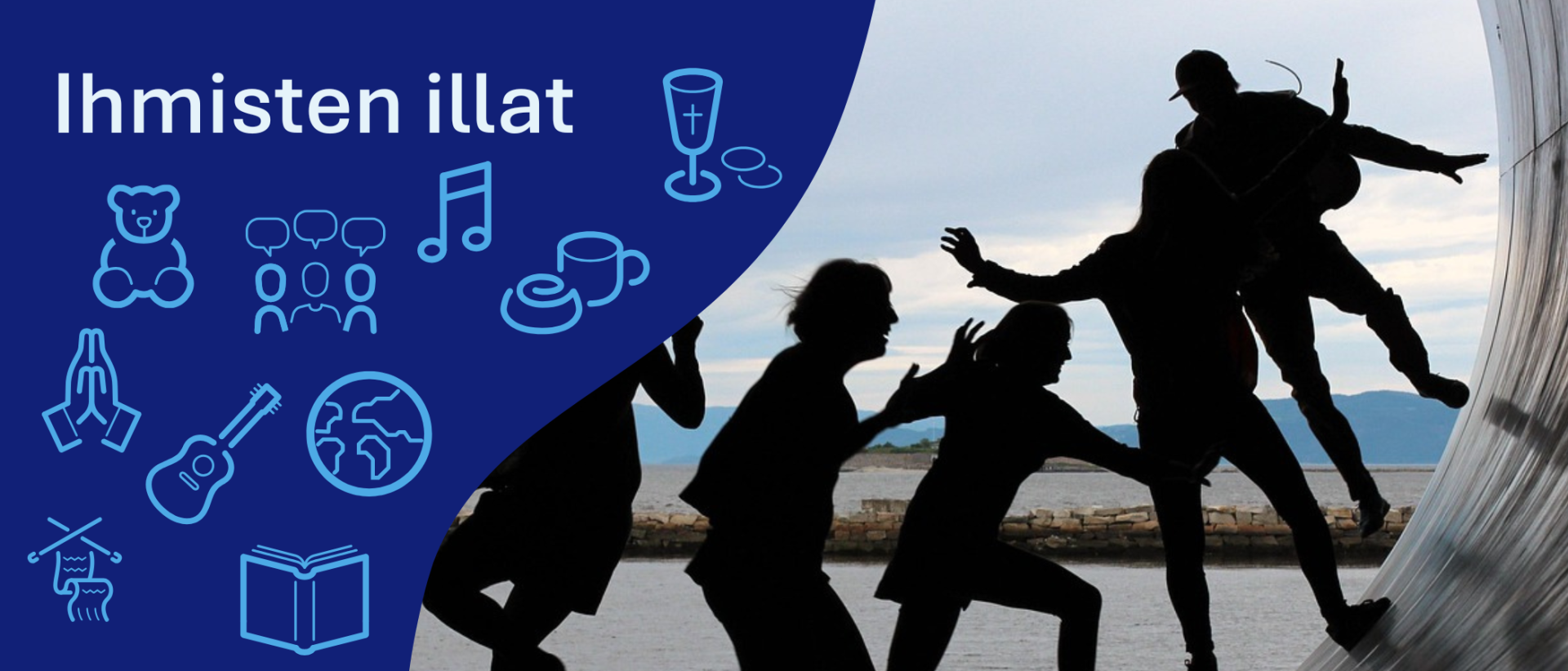 Olet sydämellisesti tervetullut ihmisten iltaan! Ihmisten ilta on vähän kuin nuortenilta, mutta aikuisille. Ihmsitenilloissa on lastenhoito/ohjelmaa myös lapsille, joten osallistua voi koko perheen voimin. Saapua voi liukuvasti omien menojen mukaan. Illoissa on mukana sekä mahdollistajia, että työntekijöitä. Iltojen rakenne on suunnilleen tällainen: