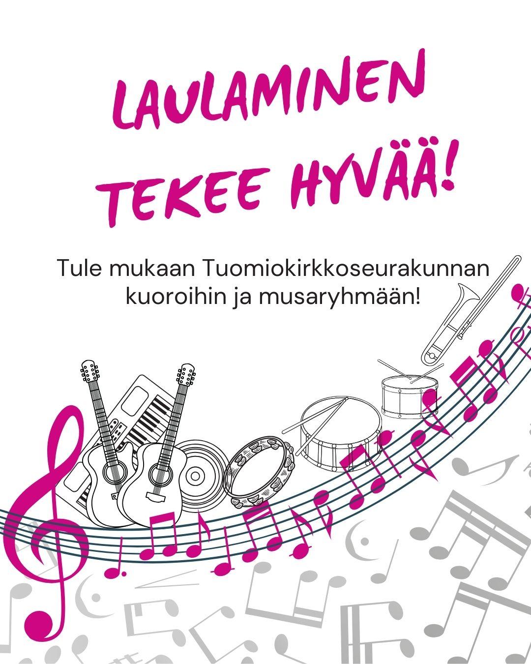 Haluatko oppia laulamisen perustaitoja ja kuorolaulua? Laulamme ja soitamme yksi -ja moniäänisesti uusia messulauluja ja vanhoja veisuja. Into laulamiseen ja itsensä kehittämiseen riittää. Ei pääsykokeita! Tuomasyhteisön Avoin musaryhmä Mikael Agricolan kirkon kahvilassa joka kuukauden 3. tiistaina klo 18-20.