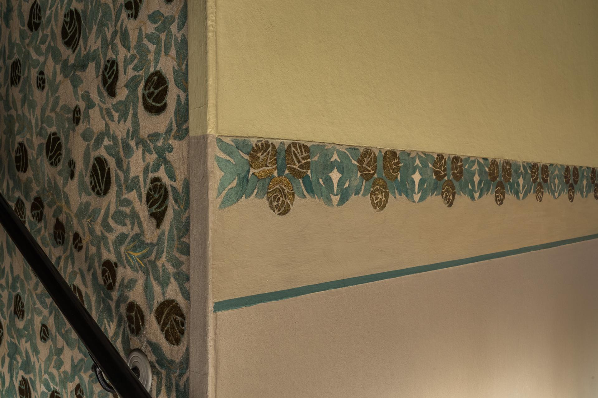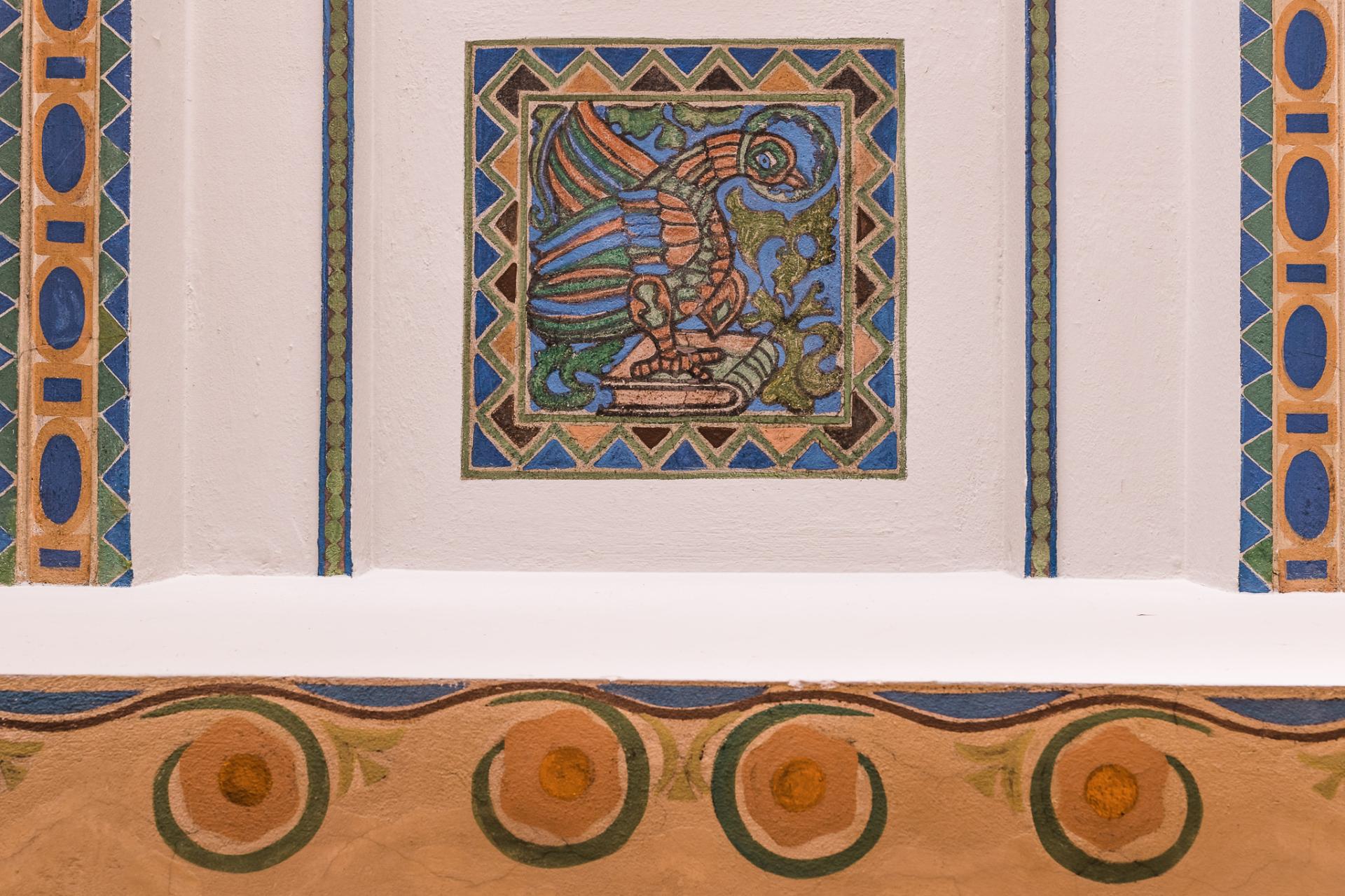 Kirkko on yksi kansallisromanttisen rakennustyylin puhtaimmista edustajista Suomessa. Kirkko on koristeltu jugendtyylisin seinämaalauksin. Pääaiheina ovat kristilliset kasvisymbolit. Ikkuna- ja ovisyvennyksissä on ruusuja, jotka yhtyvät kaarissa risti- ja seppelaiheisiin. Lehtereille vieviin portaikkoihin on maalattu suoranainen ruusutarha. Holvikaaria kiertävät liljat. Alttariholvin palmunlehvät symboloivat Kristuksen tulemista rauhanruhtinaana. Sivuaitioiden viinipuun oksat kuvastavat seurakunnan yhteyttä häneen. Kuva-aiheina toistuvat myös voiton symboli laakeriseppele, valvomisesta muistuttava kukko ja Pyhän Hengen vertauskuva kyyhkynen.