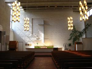 Alppilan kirkko palvelee tiheästi asutettua aluetta Linnanmäen huvipuiston naapurissa.
