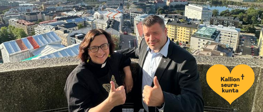 KUVA: Kirkkoherra Riikka Reina ja pääsuntio Arto Kuronen iloisevat tornin tulevasta avautumisesta kaiken sen kovan työn jälkeen, mikä tehtiin sen mahdollistamiseksi.