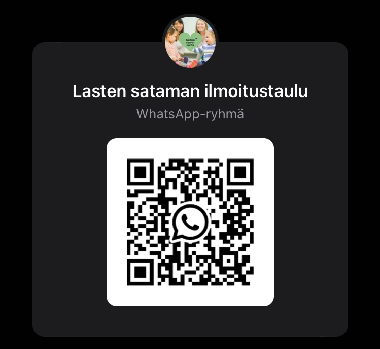 HOKS! Tässä Kalasataman Lasten ja perheiden tapahtumien WhatsApp-ryhmän liittymiskoodi