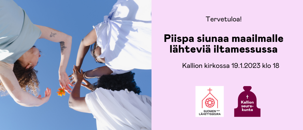 Suomen Lähetysseuran työntekijät saatellaan uusiin työtehtäviinsä heidän puolestaan yhdessä rukoillen. Piispa Teemu Laajasalo siunaa neljä uutta kehitysyhteistyöntekijää tehtäviinsä Kallion kirkossa torstaina 19.1. klo 18.