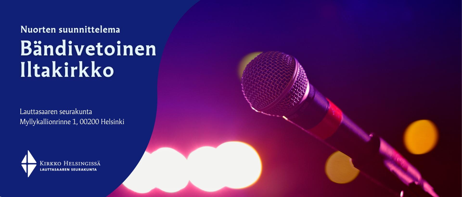 Bändivetoinen iltakirkko on nuorten suunnittelema ja toteuttama, mutta avoin kaikille ikään katsomatta. Tervetuloa!