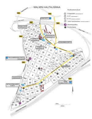 Malmin hautausmaan kortteleihin kätkeytyy paljon poliittista, yhteiskunnallista ja kulttuurihistoriaa. Hautausmaalla lepää monia tunnettuja suomalaisia.
