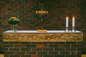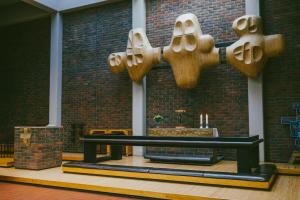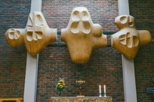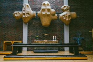 Kirkon mäntypuinen alttariveistos, kuvanveistäjä Raimo Heinon Minä se olen vuodelta 1972, herätti paljon keskustelua. Veistoksen aiheena on Jeesuksen vangitseminen Getsemanessa. Ehtoollisvälineet ovat muotoilija ja kuvanveistäjä Tapio Wirkkalan, kupariset ja pellavaiset alttaritekstiilit tekstiilitaiteilija Lea Thil-Junnilan.