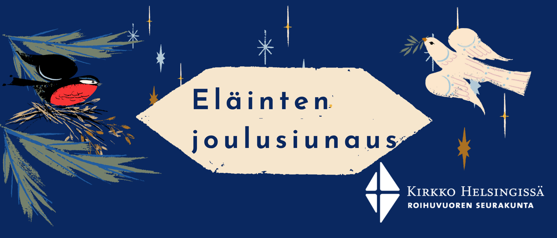 Jouluhartaus ja eläinten joulusiunaus Roihuvuoren kirkon edessä ulkona. Voit tuoda siunattavaksi lemmikkisi tai kuvan siitä. Eläinlääkäri Laura Rajakallio esittelee liikkuvaa eläinlääkäriasemaansa Petmobiilia ja vastaa kysymyksiin.