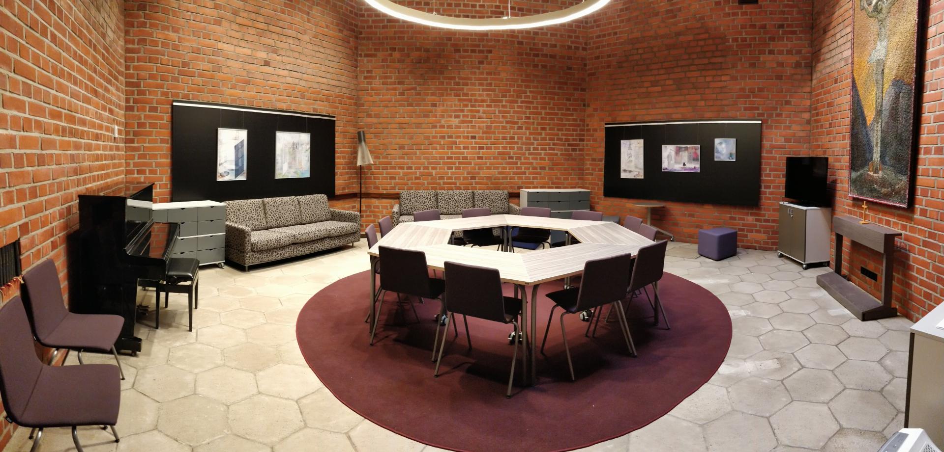 Roihuvuoren kirkon kappeli on pieni kodikas tila, joka soveltuu hyvin pienten perhejuhlien järjestämiseen. Valoa antaa kattoikkuna. Kappeli toistaa kirkkosalin kuusikulmaista muotoa.