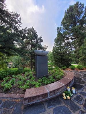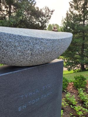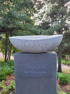 Empty Arms is located in section 20 at the Hietaniemi Cemetery and was designed by architect Harri Pakarinen. The site consists of a memorial stone along with benches and plantings. Recycled stone were used in its construction. This way existing resources are used in a responsible way.