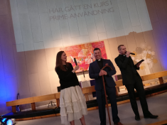 applåder. En kör av församlingsmedlemmar framförde sedan stycket "Här är jag