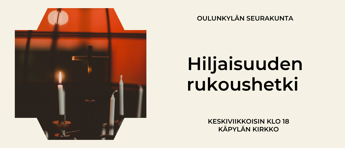 Hiljennymme Raamatun tekstien ja Taizé-laulujen äärellä. Rukoushetkeen sisältyy usein noin 10 minuutin hiljaisuus. Ehtoollinen on joka kuukauden kolmas keskiviikko.
