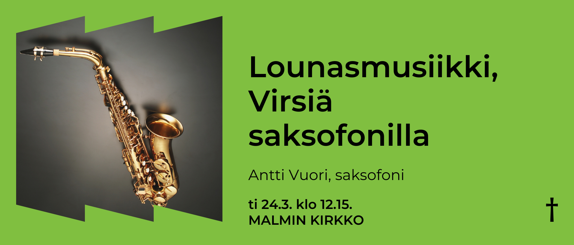 Tervetuloa lounasmusiikkikonserttiin Malmin kirkkoon ti 24.3. klo 12.15. Luvassa virsiä saksofonilla, Antti Vuori. Vapaa pääsy!