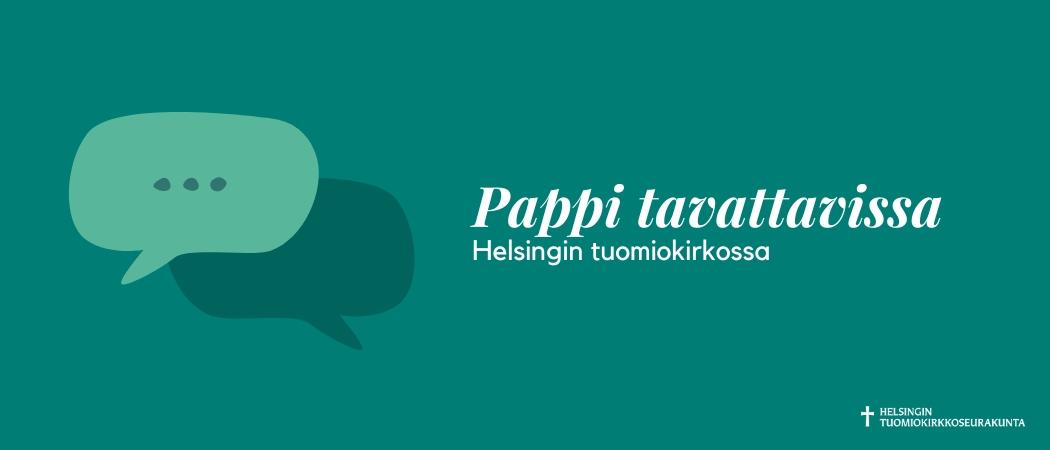 Tule juttelemaan Tuomiokirkon seurakunnan papin kanssa luottamuksellisesti Tuomiokirkkoon torstaisin klo 15-17 elämän suurista tai pienistä asioista, huolista tai iloista. Tapaamisen yhteydessä mahdollisuus myös rippiin ja yksityiseen ehtoollisenviettoon. Muistathan myös, että voit varata tapaamisajan esimerkiksi päivystyspuhelimemme kautta: soita 09 23406102 (joka päivä klo 9-18).