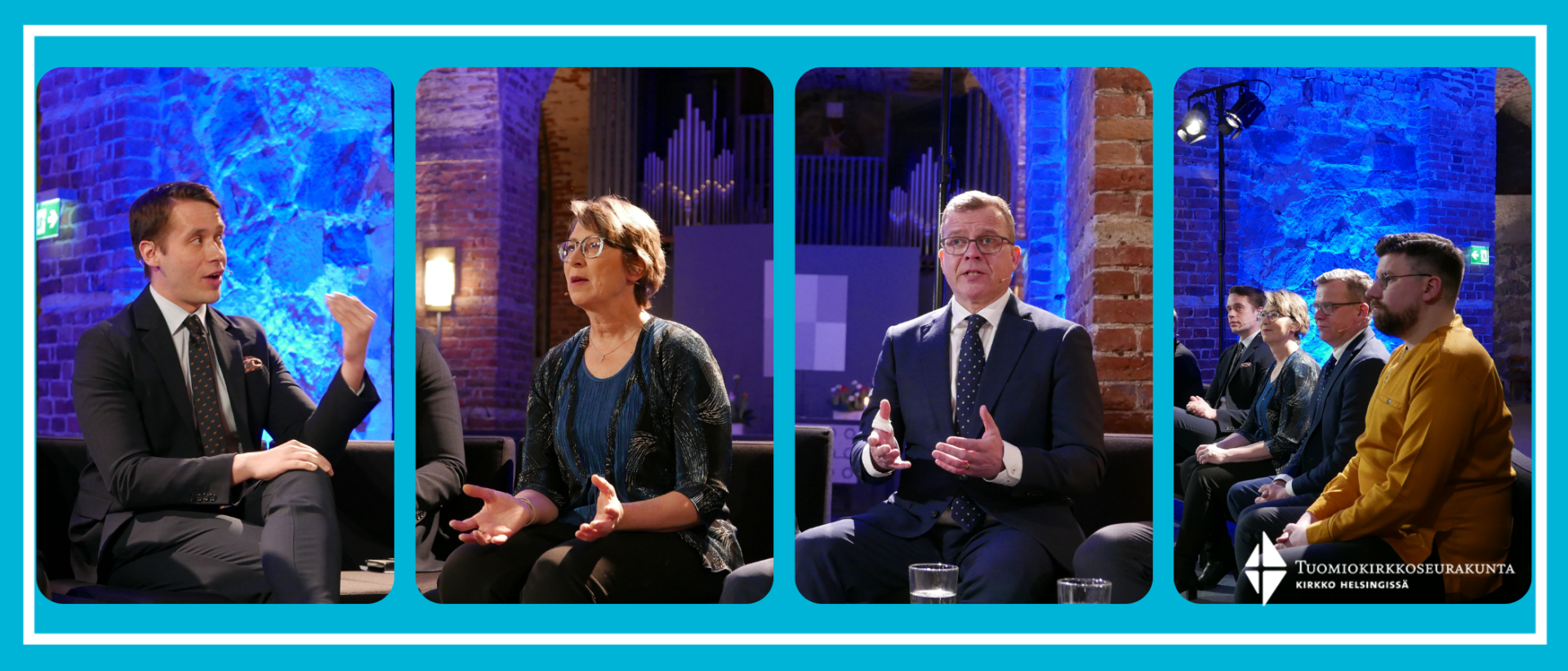 Millaisille arvoille Suomen tulevaisuus rakentuu? Kirkon arvokeskustelu kokosi eduskuntapuolueiden puheenjohtajat Tuomikirkon kryptaan