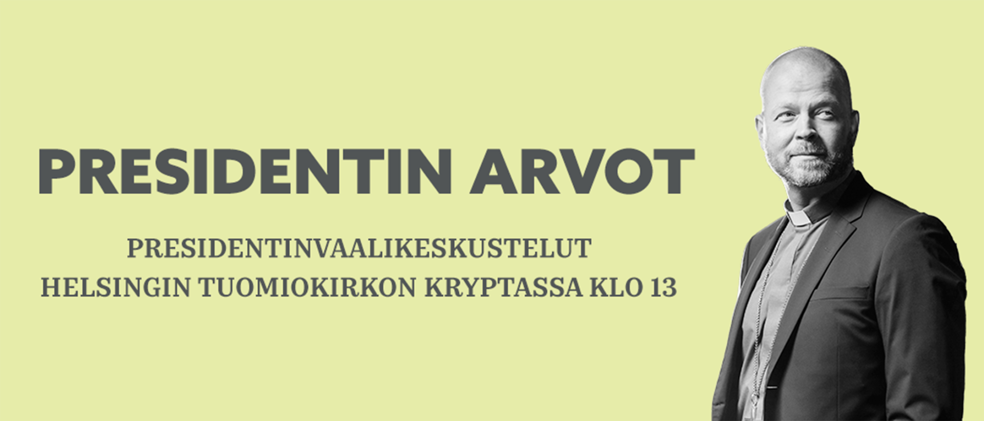Helsingin hiippakunnan piispa Teemu Laajasalo haastattelee marras-joulukuussa presidentinvaaliehdokkaita Helsingin tuomiokirkon kryptassa. Presidentin arvot -keskustelusarjassa jokaista ehdokasta haastatellaan yksi kerrallaan noin tunnin ajan. Keskustelusarjassa mukana ovat ehdokkaista Mika Aaltola, Li Andersson, Sari Essayah, Pekka Haavisto, Jussi Halla-aho, Harry Harkimo, Olli Rehn, Alexander Stubb ja SDP:n ehdokas.