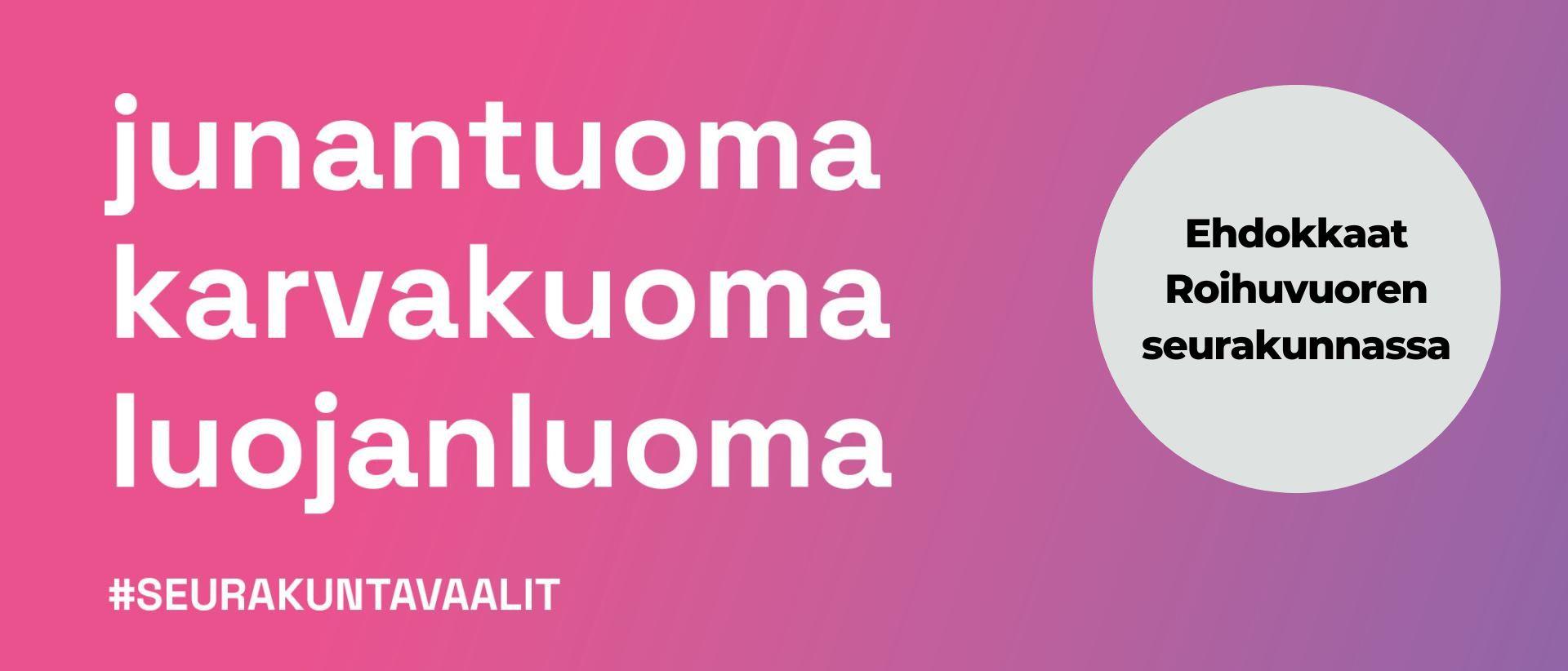 Roihuvuoren seurakunnan vaalilautakunta on kokouksessaan 15.9.2022 todennut kelpoisiksi seurakuntavaaleissa seuraavat ehdokkaat: