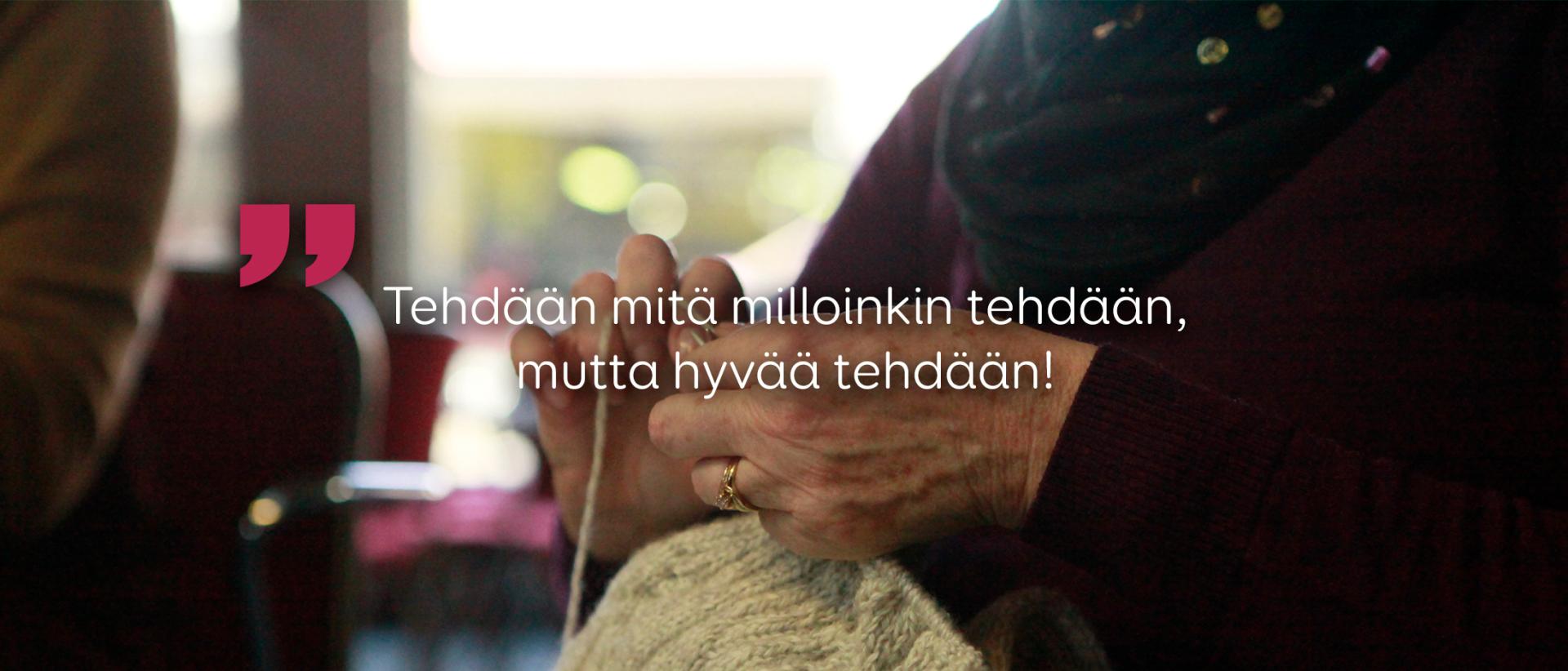 Tehdään mitä milloinkin tehdään, mutta hyvää tehdään.