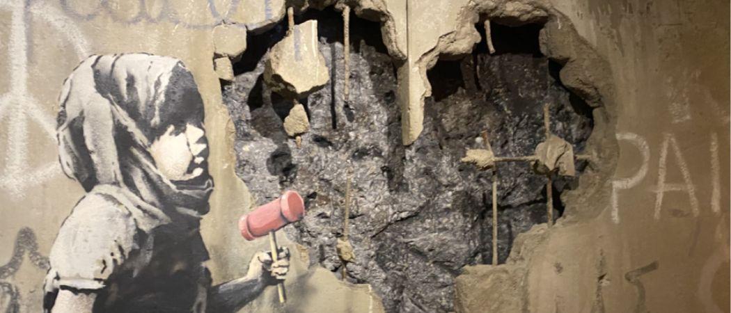 Kuva: Graffititaiteilija Banksyn teos Länsirannalla sijaitsevassa muurissa. Kuvaaja: Juha Rintamäki.