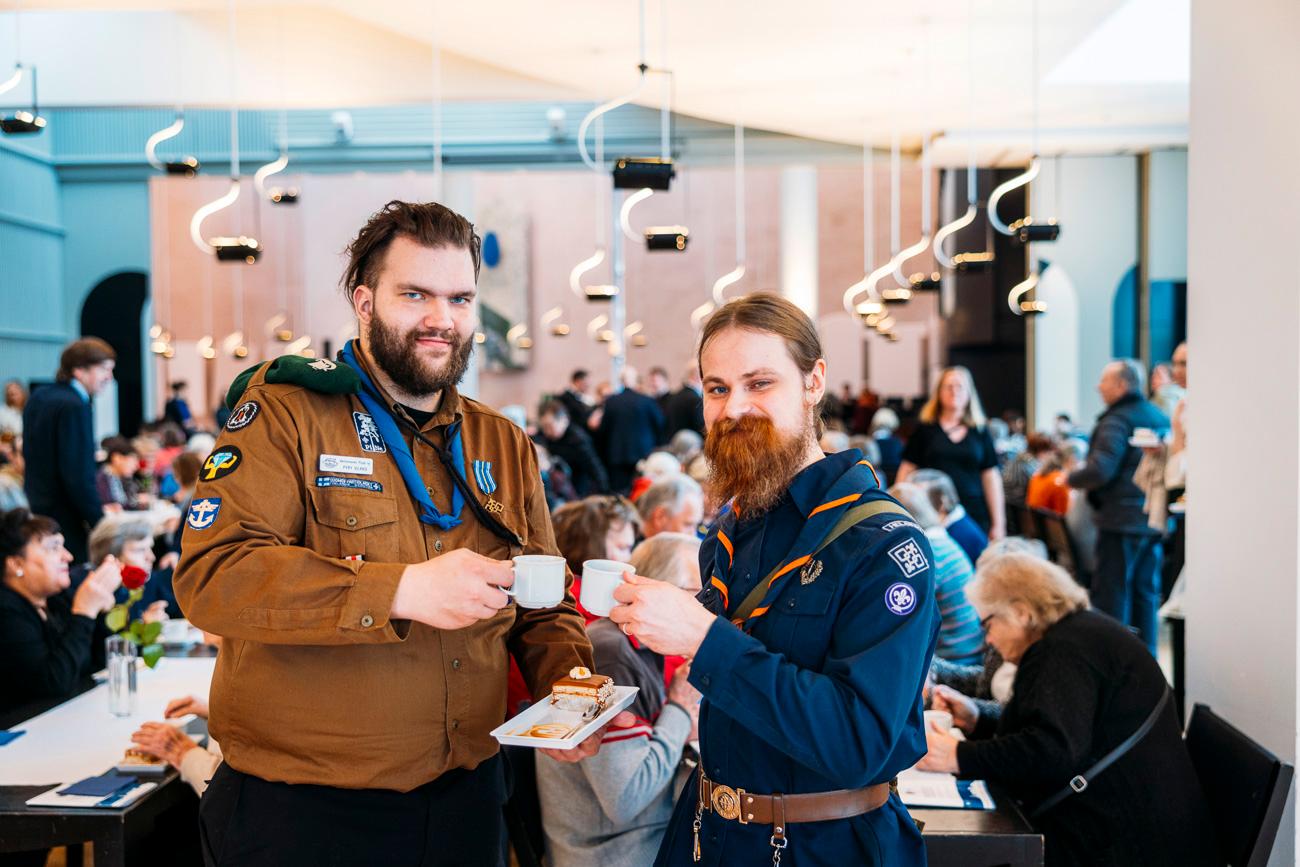 Partiojohtajat Mikaelinkirkossa juhlakahveilla 220123. Kuva: Jani Laukkanen