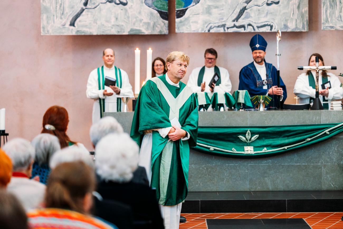 Lämminhenkiset kirkkoherra Jukka Pakarisen virkaanasettajaiset Mikaelinkirkolla