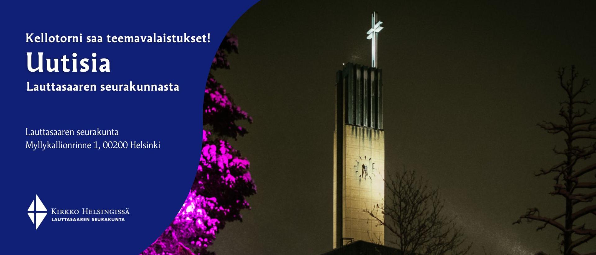 Itsenäisyyspäivänä 6.12. saaren kellotorni hehkuu sinivalkoisena Suomen itsenäisyyden kunniaksi. Juhlavalaistus vaihtuu 7.–8.12. jouluisiin vihreän ja punaisen sävyihin. Näiden päivien aikana Lauttasaaren kirkolla järjestetään perinteinen Joulupolku-tapahtuma sekä toisen adventin messu.