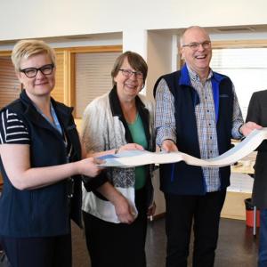 Lahjoituksen Vuosaaren kirkolla ottivat torstaina 11.5. vastaan Merimieskirkon puolesta merenkulkijatyön johtaja ja yhteyspäällikkö Jaakko Laasio, sekä satamakuraattori Taija Kivistö.
