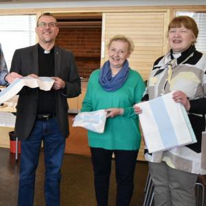 Lahjoituksen luovuttivat kirkkoherra ja rovasti Jussi Mäkelä, seurakunnan kappalainen Tiina Ahonen sekä pääsuntio Sirkka Nyqvist. Mukana oli myös Merimieskirkon ja Vuosaaren seurakunnan aktiivinen toimija Anja Hinkkanen.