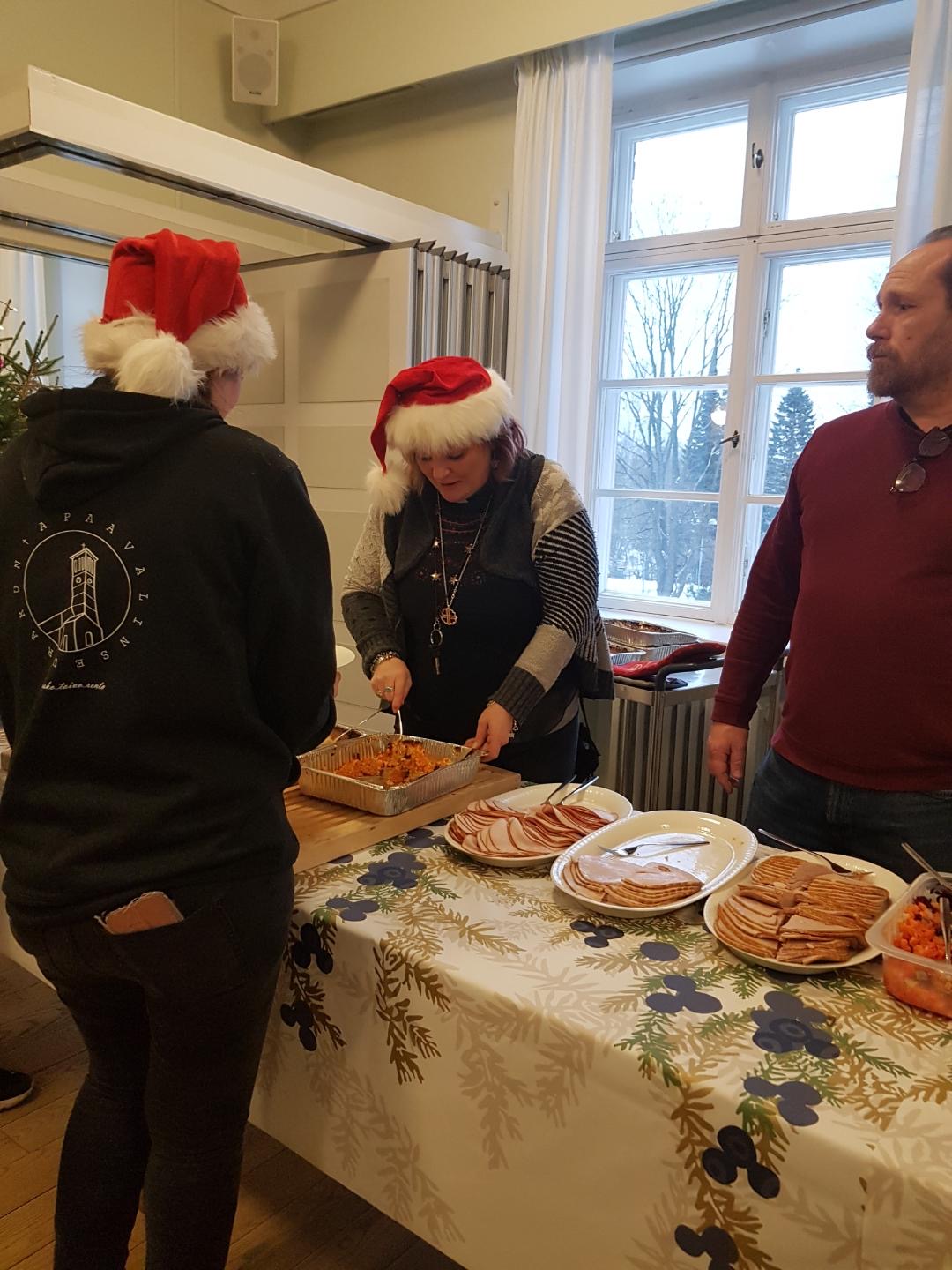 Asunnottomien kohtaamispaikka Illusian ja pitkäaikaisasunnottomien asumispalveluyksikkö Pessin väki vietti iloista joulujuhlaa ruuan, hartauden ja joululaulujen merkeissä.
