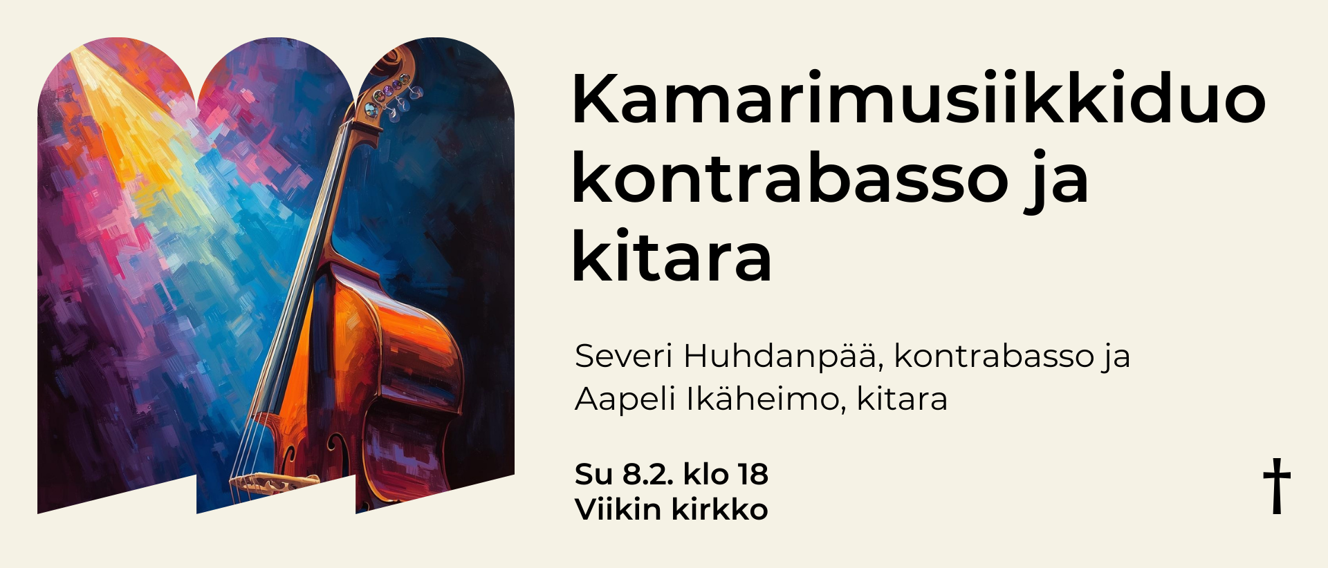 Sibelius-Akatemian opiskelijat Severi Huhdanpää, kontrabasso ja Aapeli Ikäheimo, kitara, esittävät kamarimusiikkiduona teoksia kontrabassolle ja kitaralle. Konsertti kestää noin tunnin, ei sisällä väliaikaa. Konsertti sisältää esim sovituksen kitaralle ja kontrabassolle Franz Scubertin sonaatista a-mollissa arpeggionelle ja pianolle.