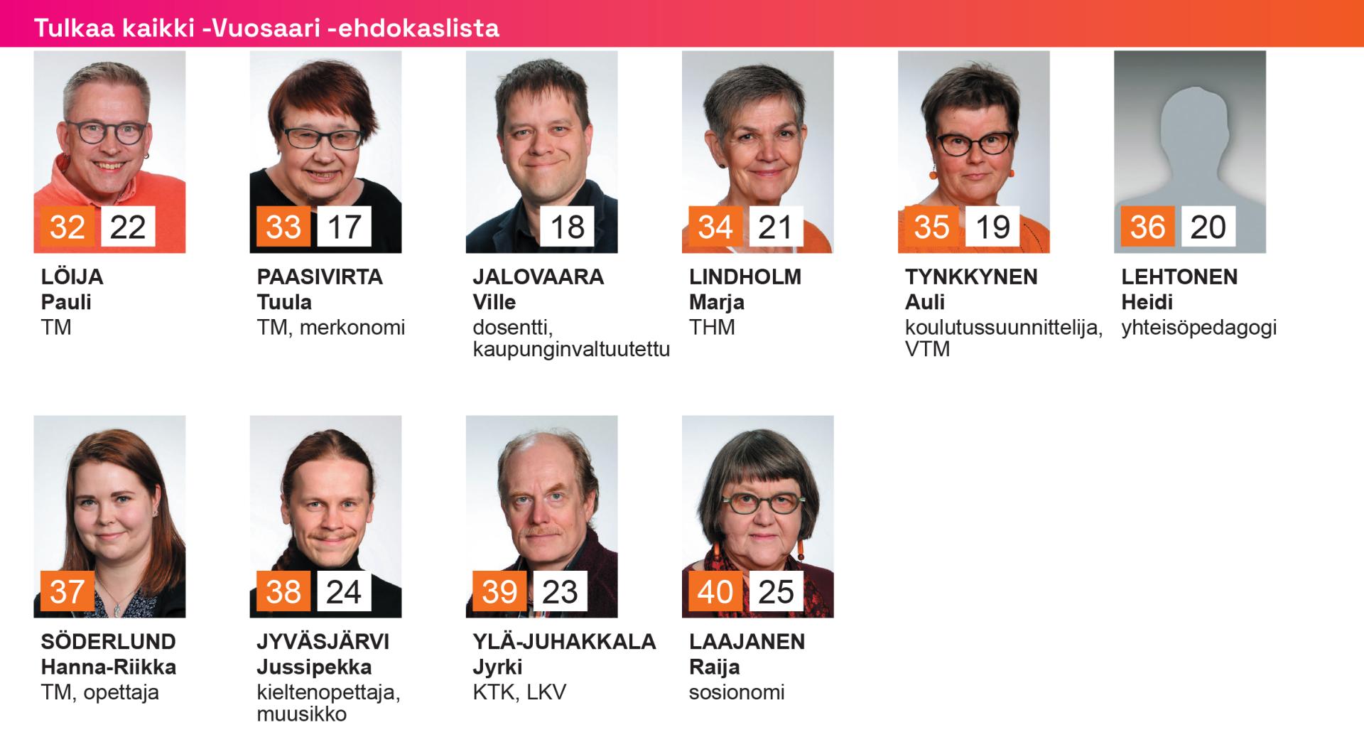 Valitsijayhdistys: Vuosaaren seurakunnan kokoomuslaisten TOIVO -ehdokaslista
